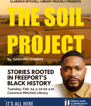 FREEPORT — Highland Community College’s Clarence Mitchell Library will present “The Soil Project: Stories rooted in Freeport’s Black history,” at 10 a.m. February 24, 2026 in the Clarence Mitchell Library for Black History Month.
